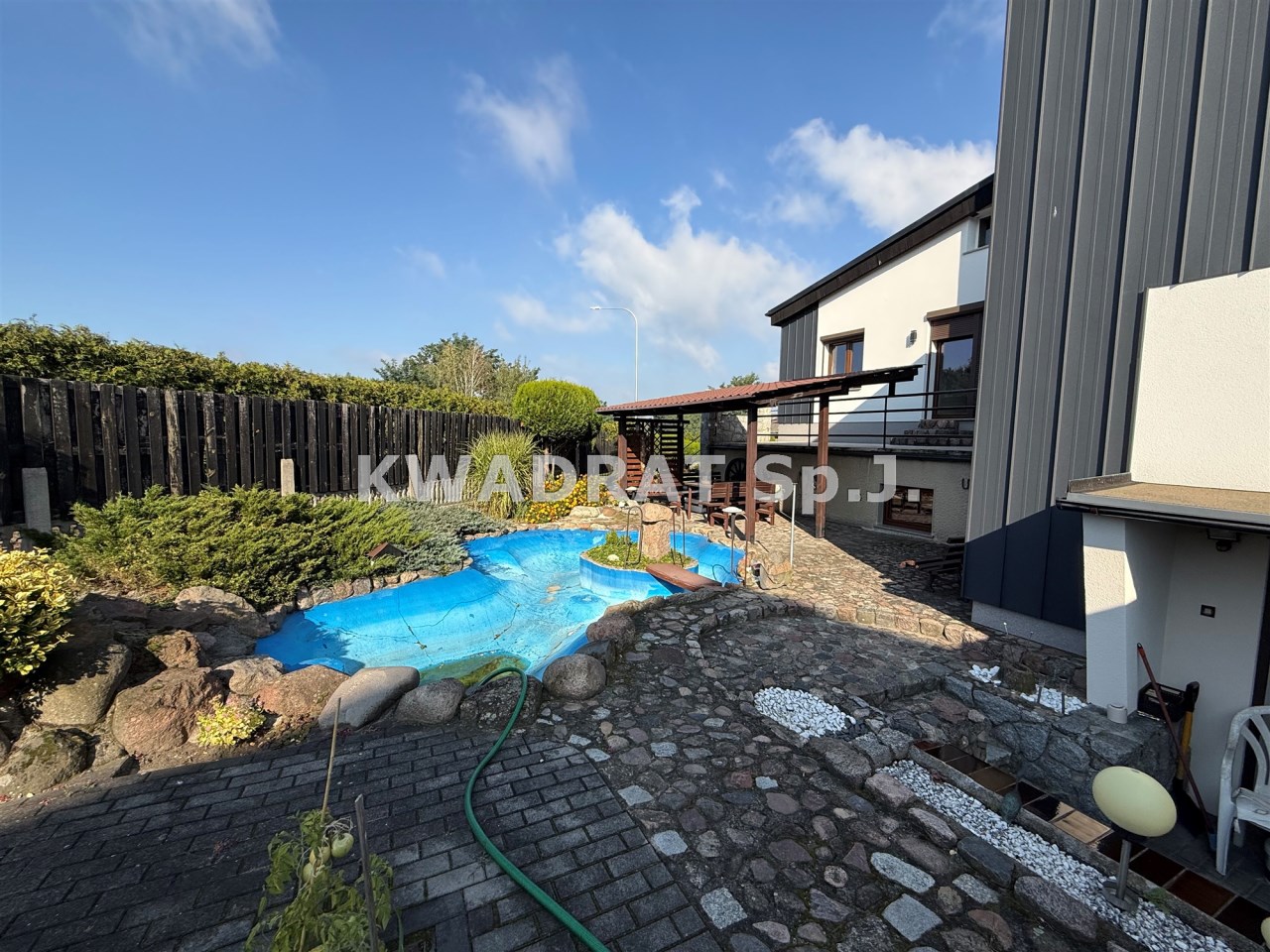 Działka o powierzchni 706 m2 jest zadbana i pięknie zagospodarowana drzewami i krzewami. Znajduje się tam również oczko wodne oraz zadaszone miejsce idealne do relaksu i wypoczynku. Działka w całości ogrodzona, posiada bezpośredni dostęp do drogi asfaltowej z dwóch stron.