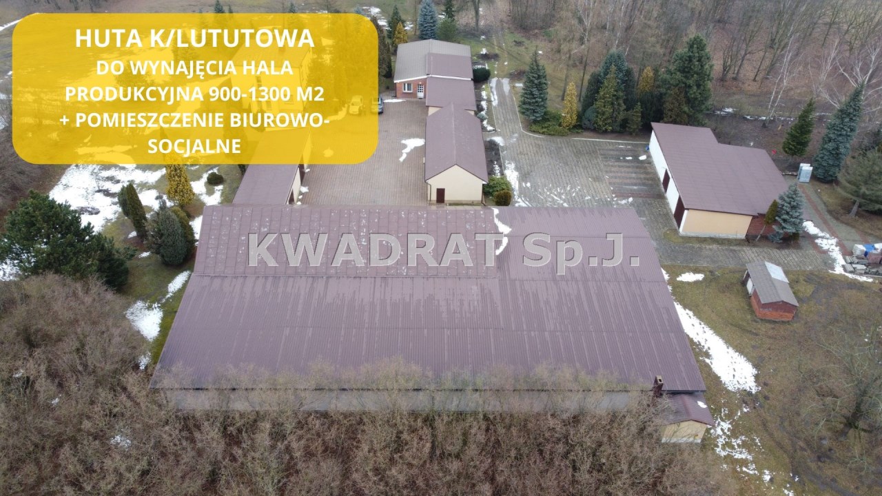 KWADRAT prezentuje do wynajęcia przestronną halę produkcyjno-magazynowa o pow. od 900 do 1300 m2, położoną w miejscowości Huta koło Lututowa. Nieruchomość idealna pod działalność produkcyjną lub magazyn.