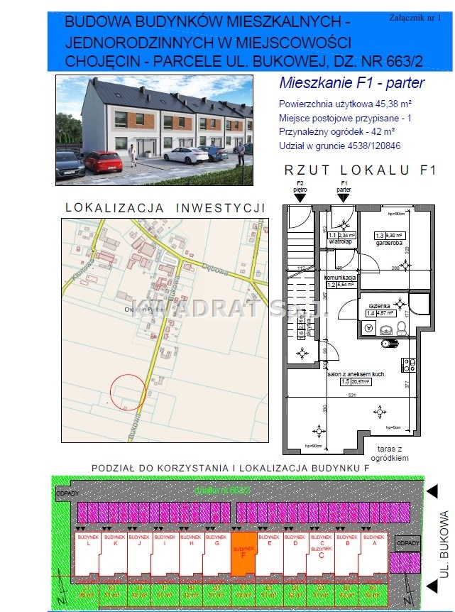 KWADRAT przedstawia wyjątkową ofertę mieszkań w nowej inwestycji – budynkach mieszkalnych jednorodzinnych dwulokalowych w zabudowie szeregowej, zlokalizowanej w miejscowości Chojęcin-Parcele przy ul. Bukowej.