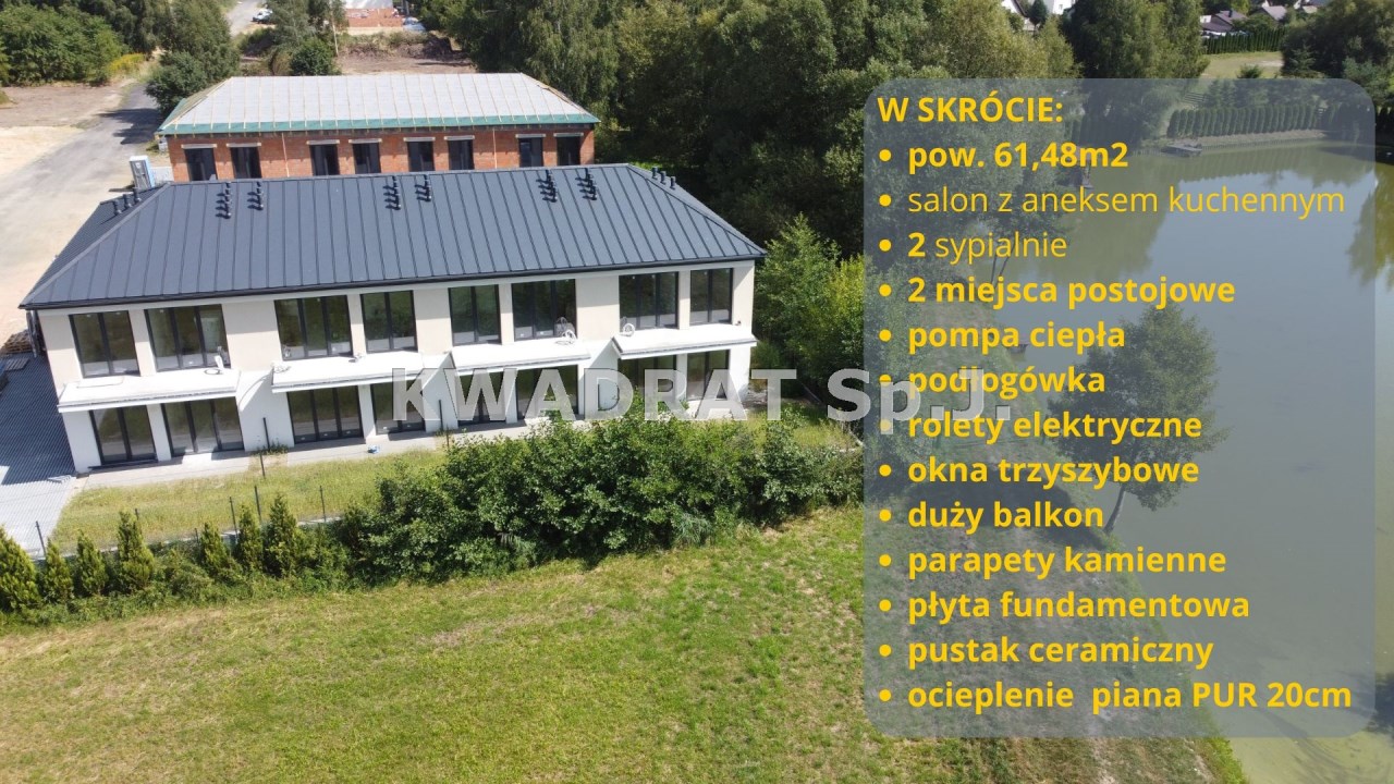 KWADRAT prezentuje na sprzedaż nowoczesne i wygodne mieszkanie w bardzo dogodnej lokalizacji. Lokal położony jest na I piętrze domu w zabudowie szeregowej. Powierzchnia całkowita 61,48 m2. Oferowane mieszkanie posiada duży, ustawny salon wraz aneksem kuchennym i bezpośrednim wyjściem na TARAS, 2 sypialnie oraz łazienkę. Do mieszkania przynależne są dwa miejsca parkingowe.